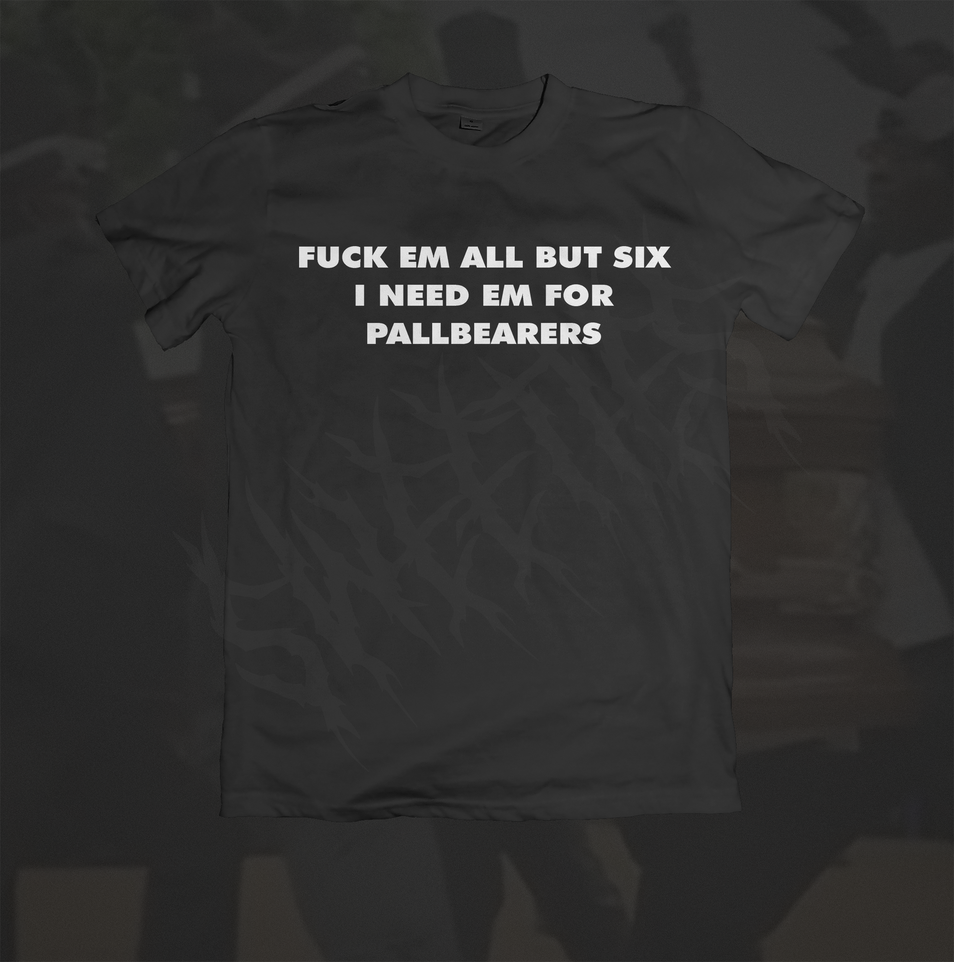 This black shirt is not for the faint of heart. It's for those who have fully embraced their inner misanthrope and have no patience for the fickle and superficial nature of human relationships. With its bold and unapologetic design, this "all I need is six friends for pallbearers" shirt is the perfect way to declare your disdain for society and its conventions.